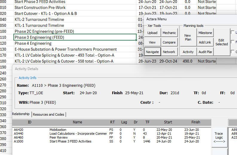 Actara turns XER schedules into something you can read, trace, and discuss in minutes, directly in Excel.